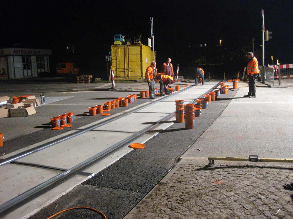 Herstellung eines 34m langen edilon)(sedra Bahnübergangs einschließlich begleitendem Gleis- und Straßenbau auf einer der meistbefahrenen Straßen Kiels mit aufwendiger Verkehrssicherung und Einbau in Abschnitten mit eng gesteckten Zeitvorgaben.